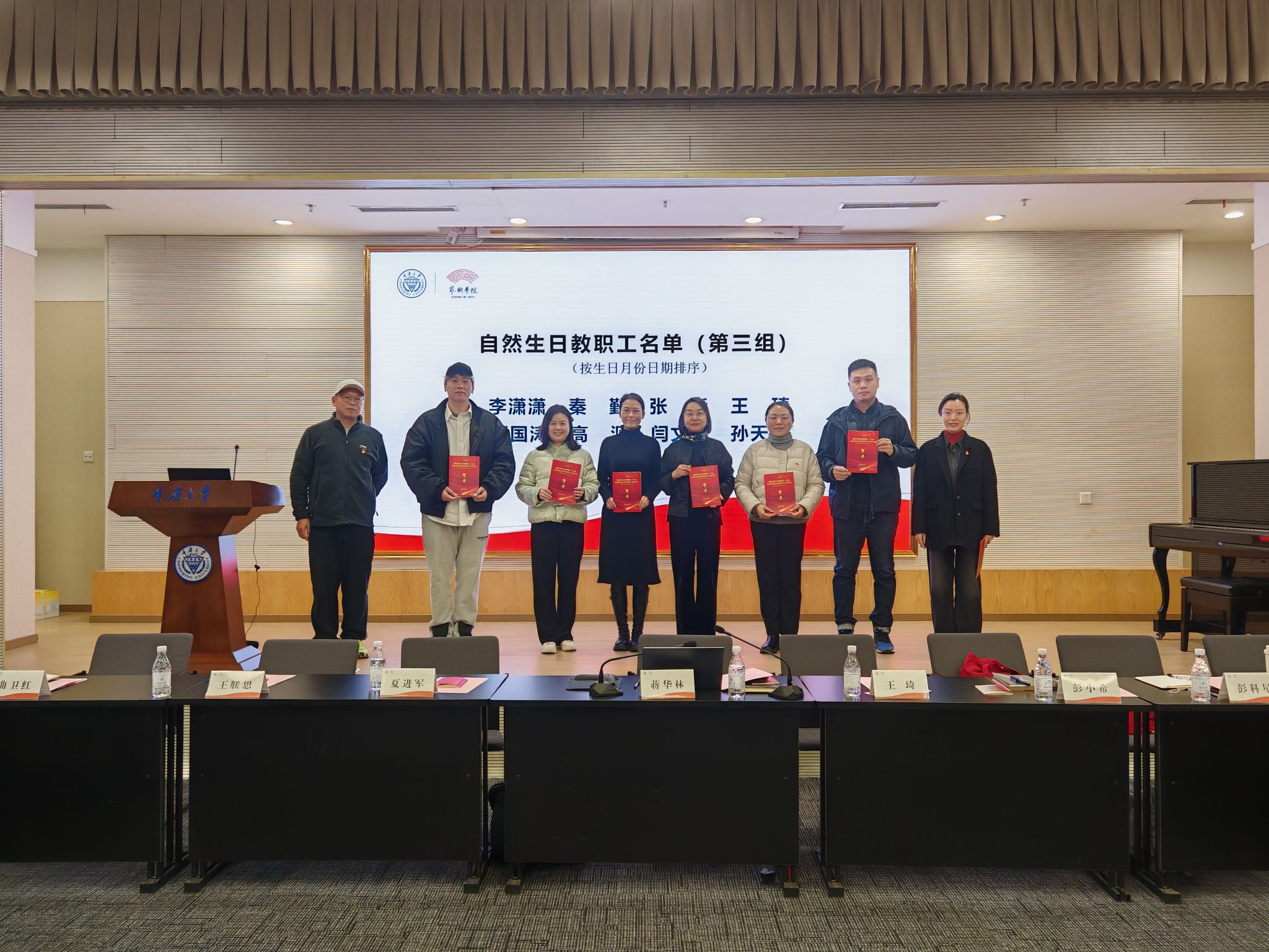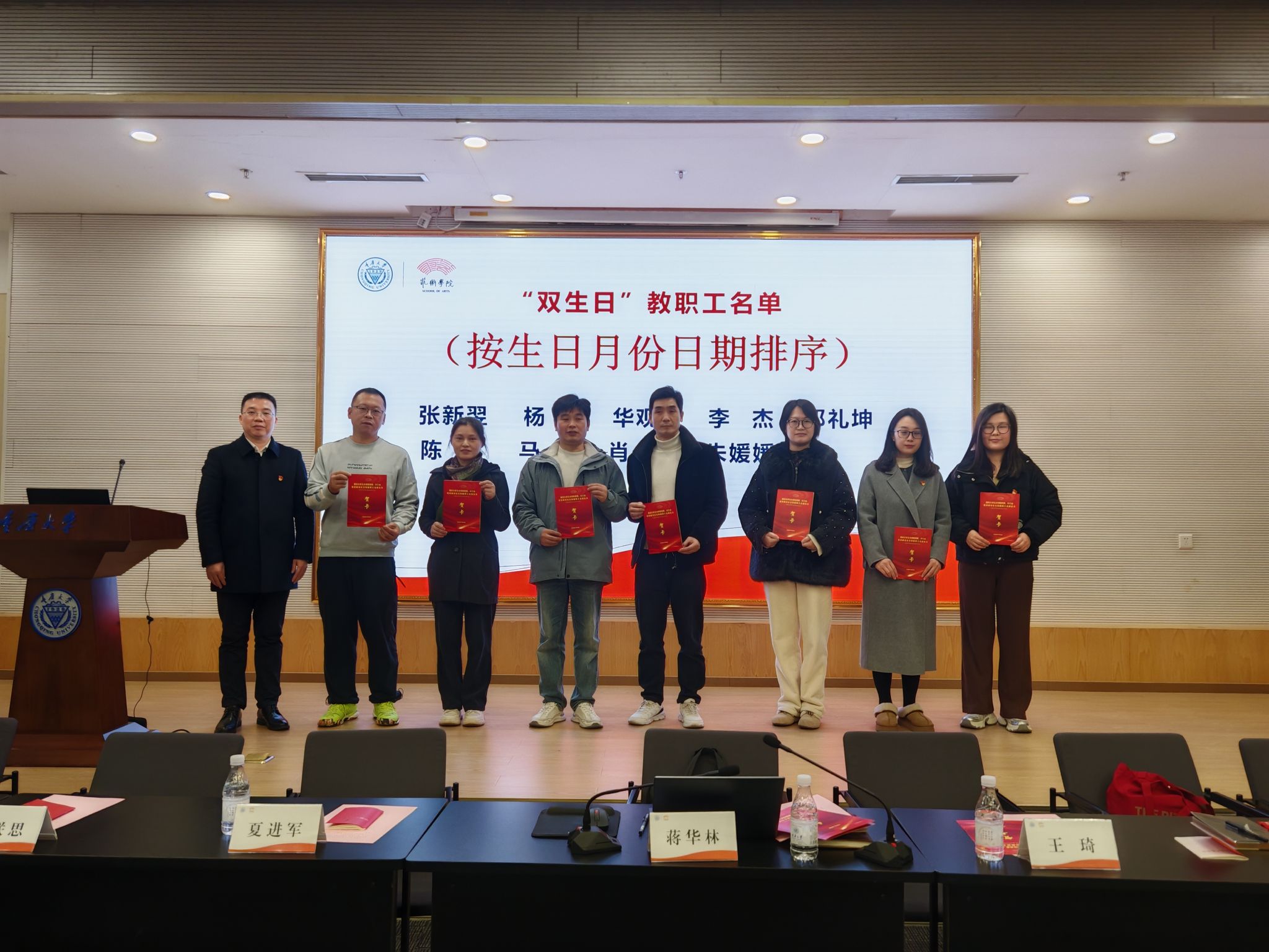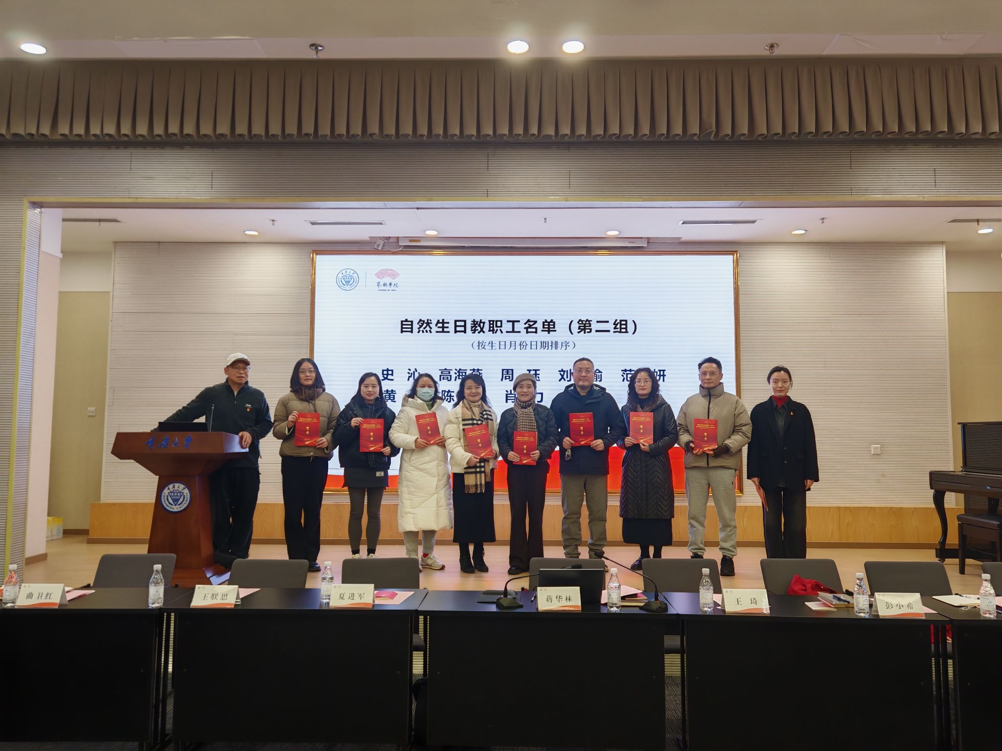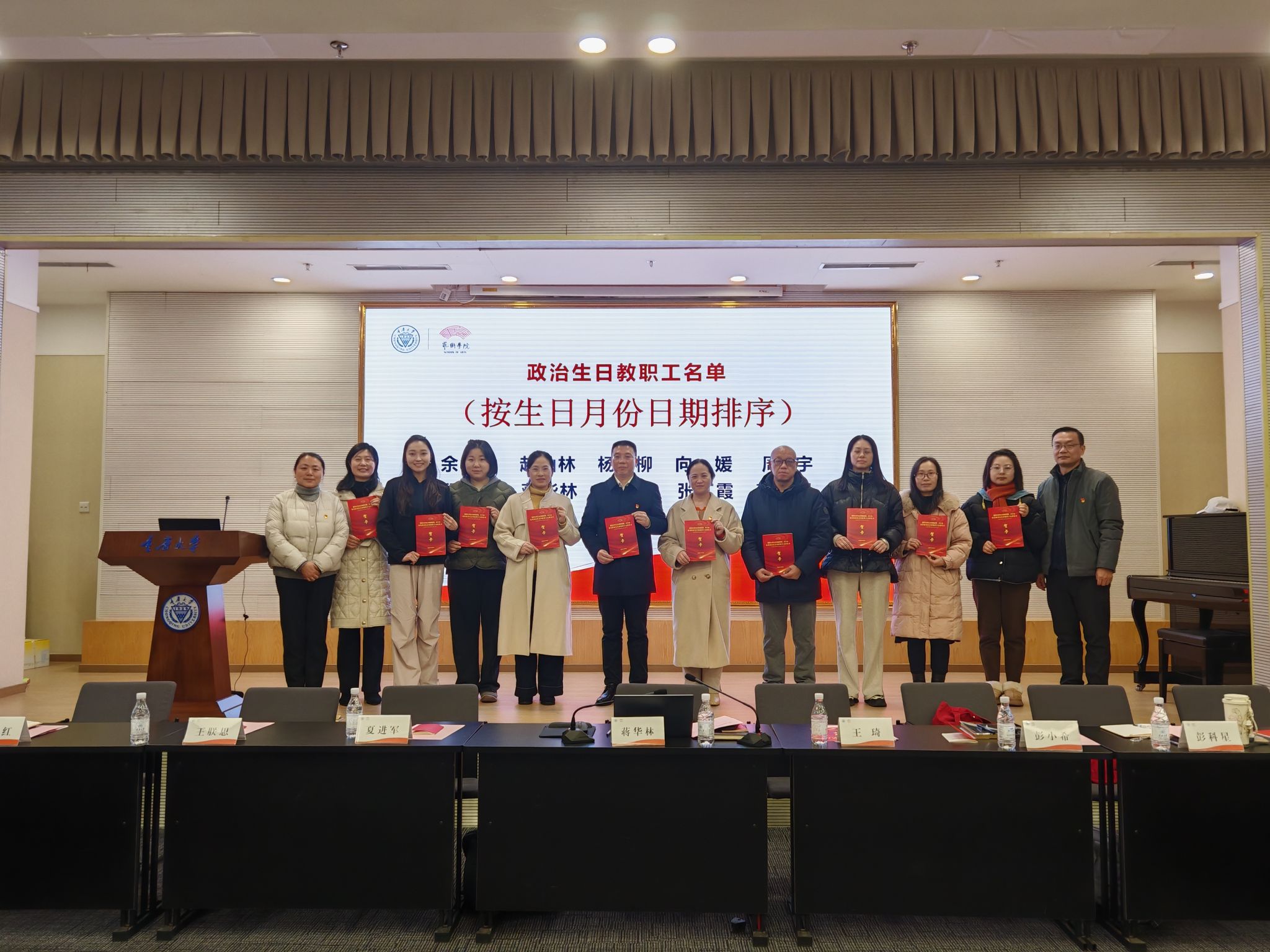 王琦宣读了过生日的教职工名单,院领导和分工会负责人为大家颁发了生日贺卡。