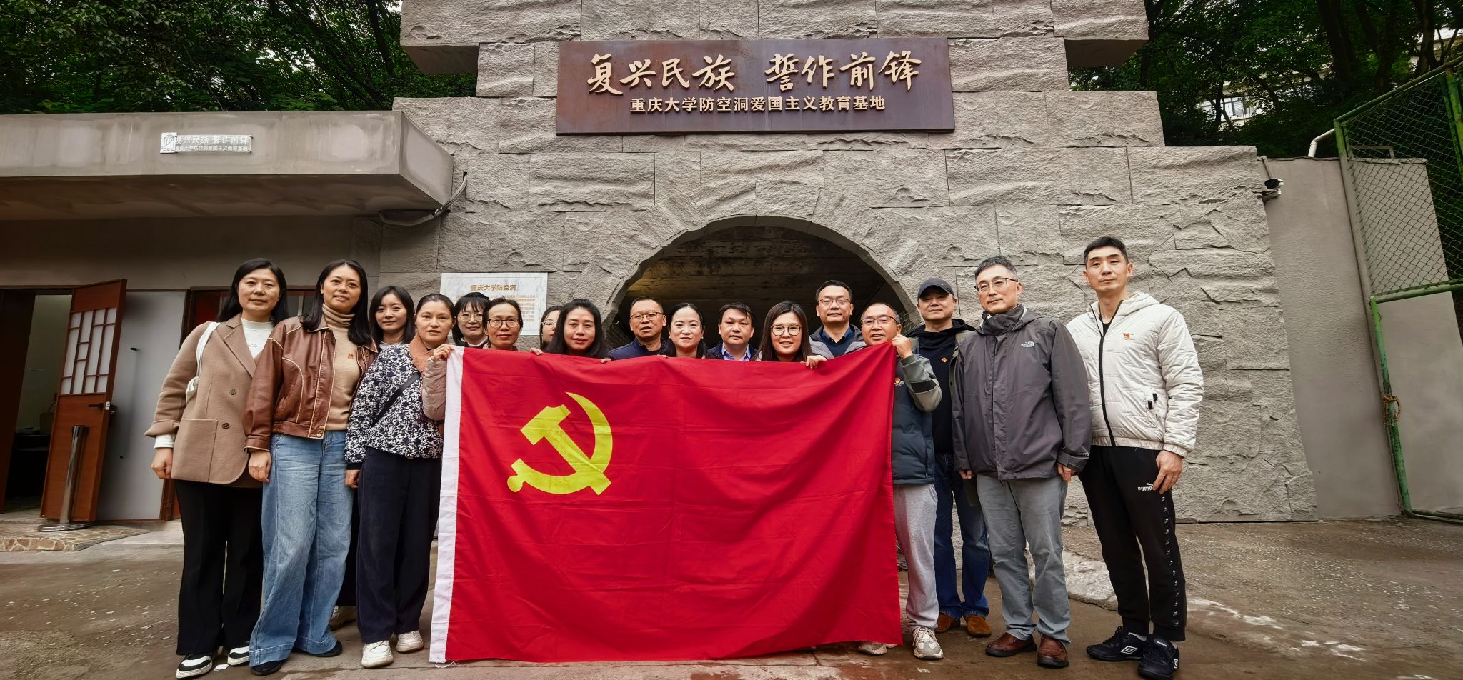 行政教工党支部与设计学系教师党支部联合开展“复兴民族,誓作前锋”主题党日活动,到位于沙坪坝校区A校园的重庆大学防空洞爱国主义教育基地参观学习。