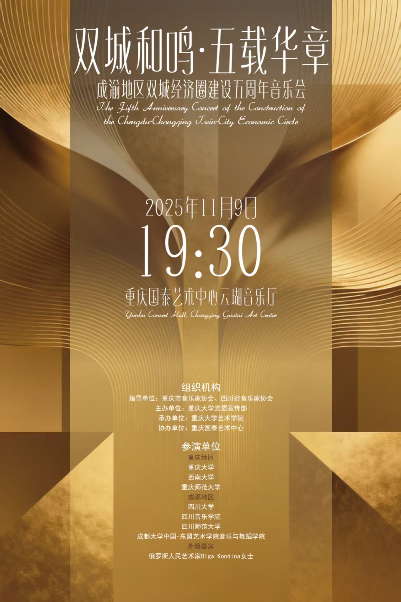 预告 | “双城和鸣·五载华章”成渝地区双城经济圈建设五周年主题音乐会将于11月9日在重庆国泰艺术中心举行