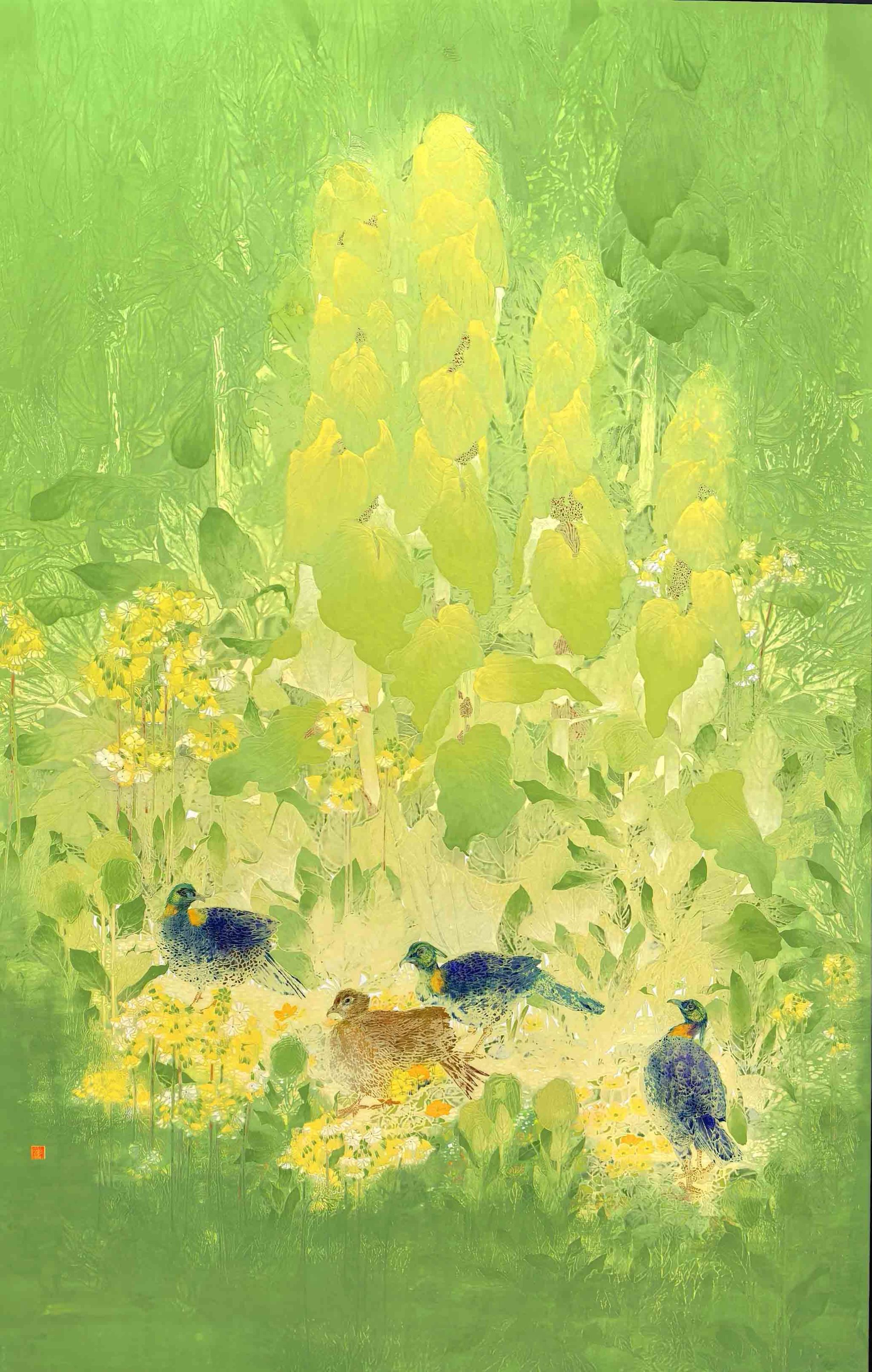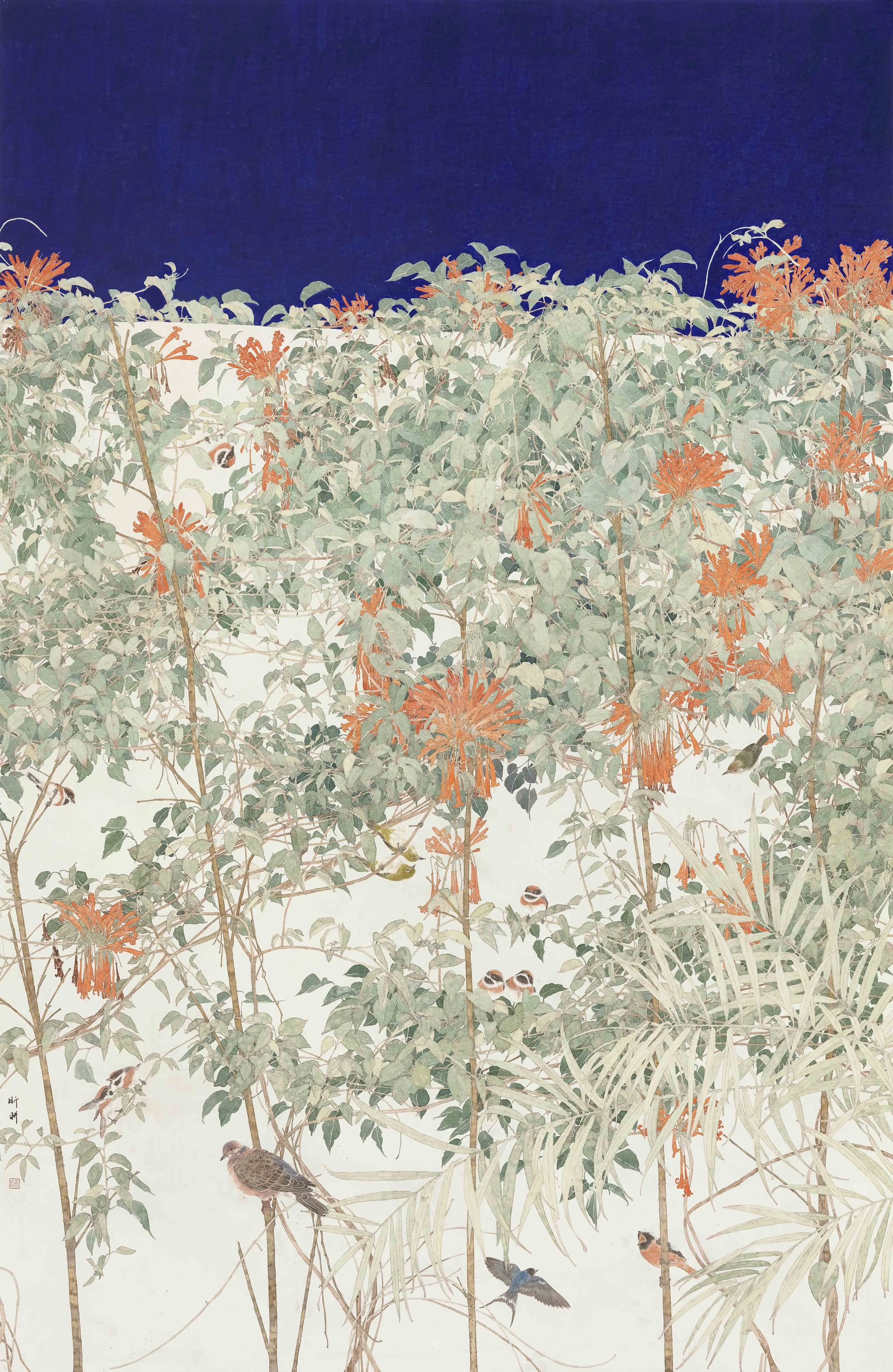 冯昕昕 《翠蔓禽影》 工笔重彩 233cm×135 cm