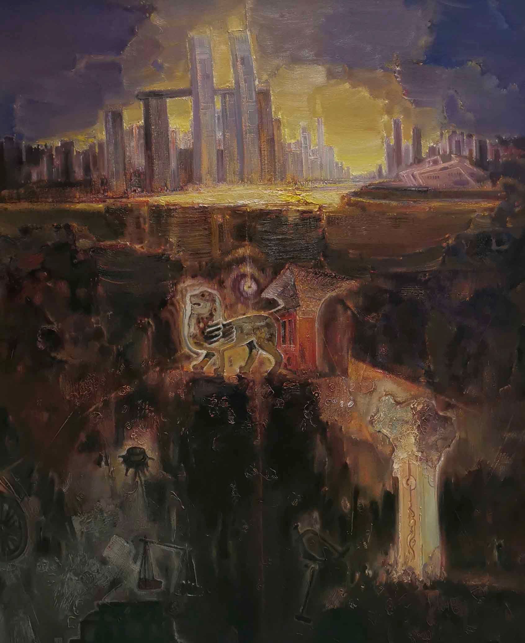 王云龙 《城市上空》油画 120cm×140cm