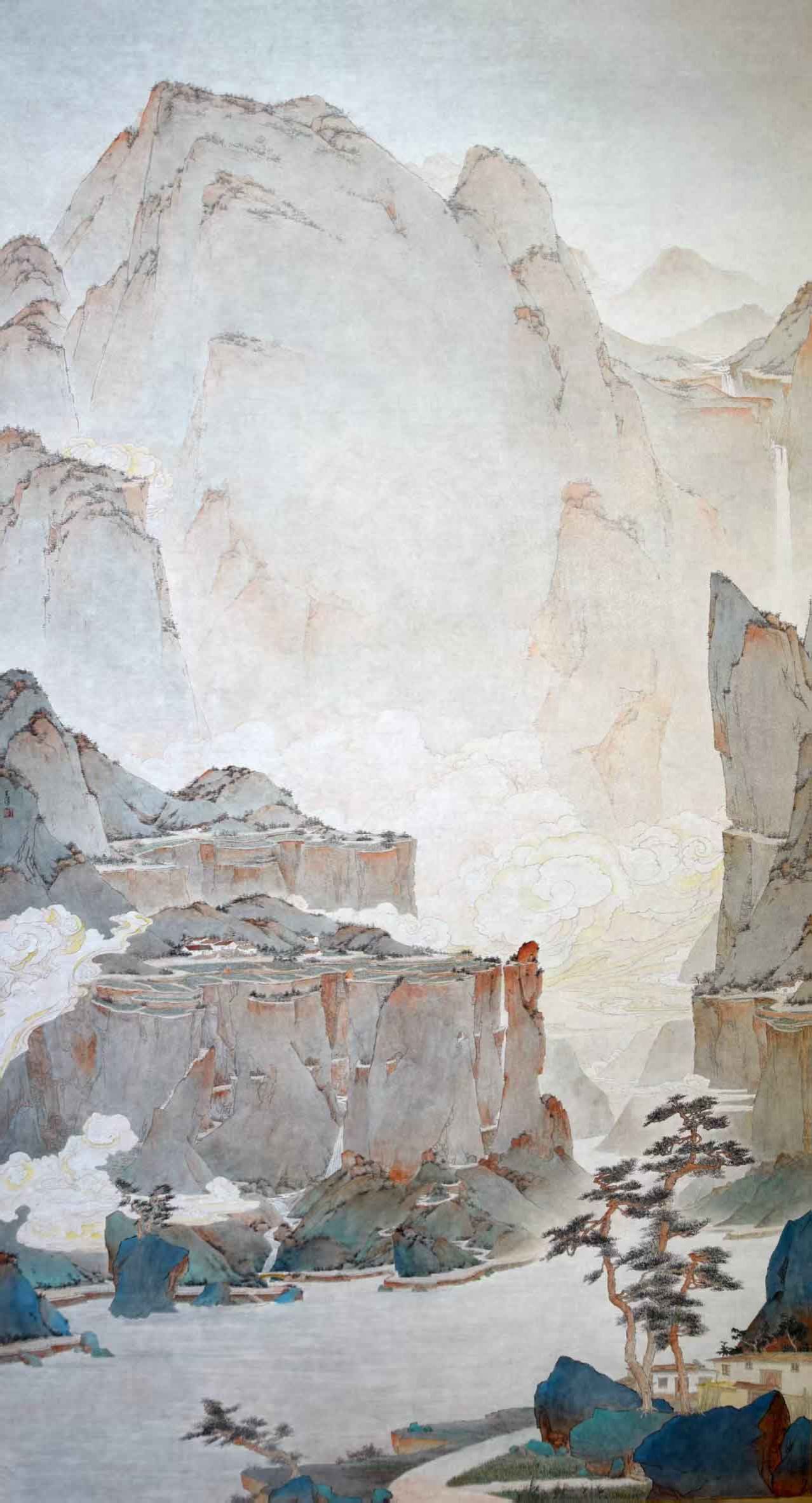 王汉 《通向幸福的山路》 纸本设色 170cm × 92cm