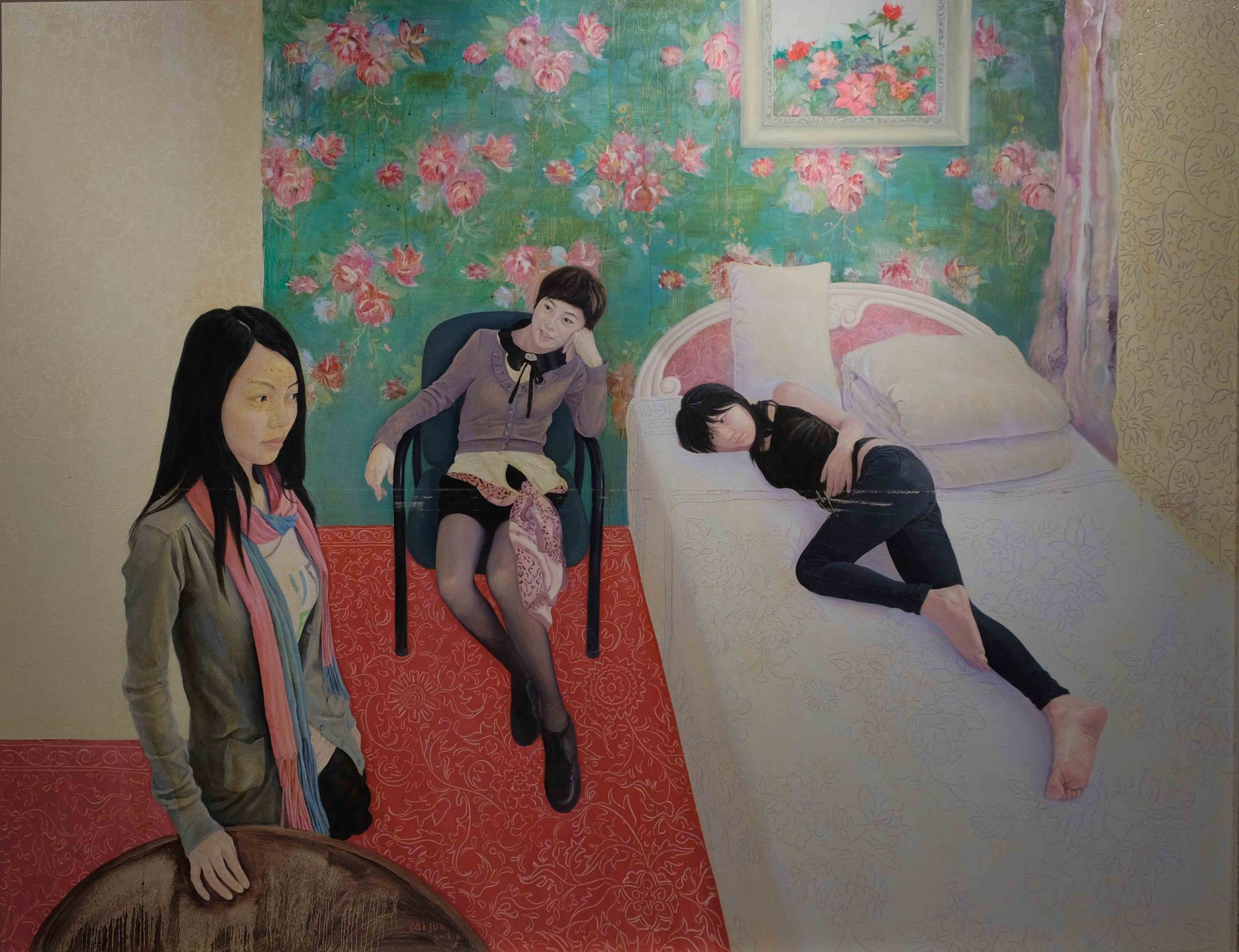 蔡骏 《绿底红花》 油画 180cm×250cm