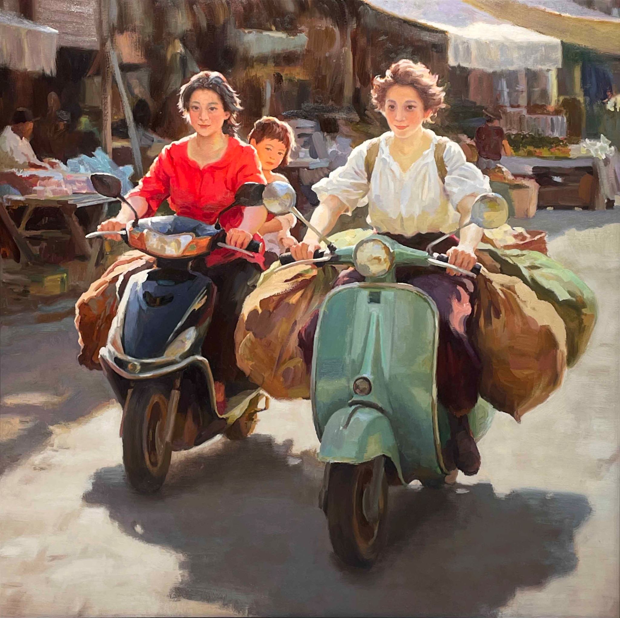 武若尘 《小镇上的姐妹们》油画 120cm×120cm