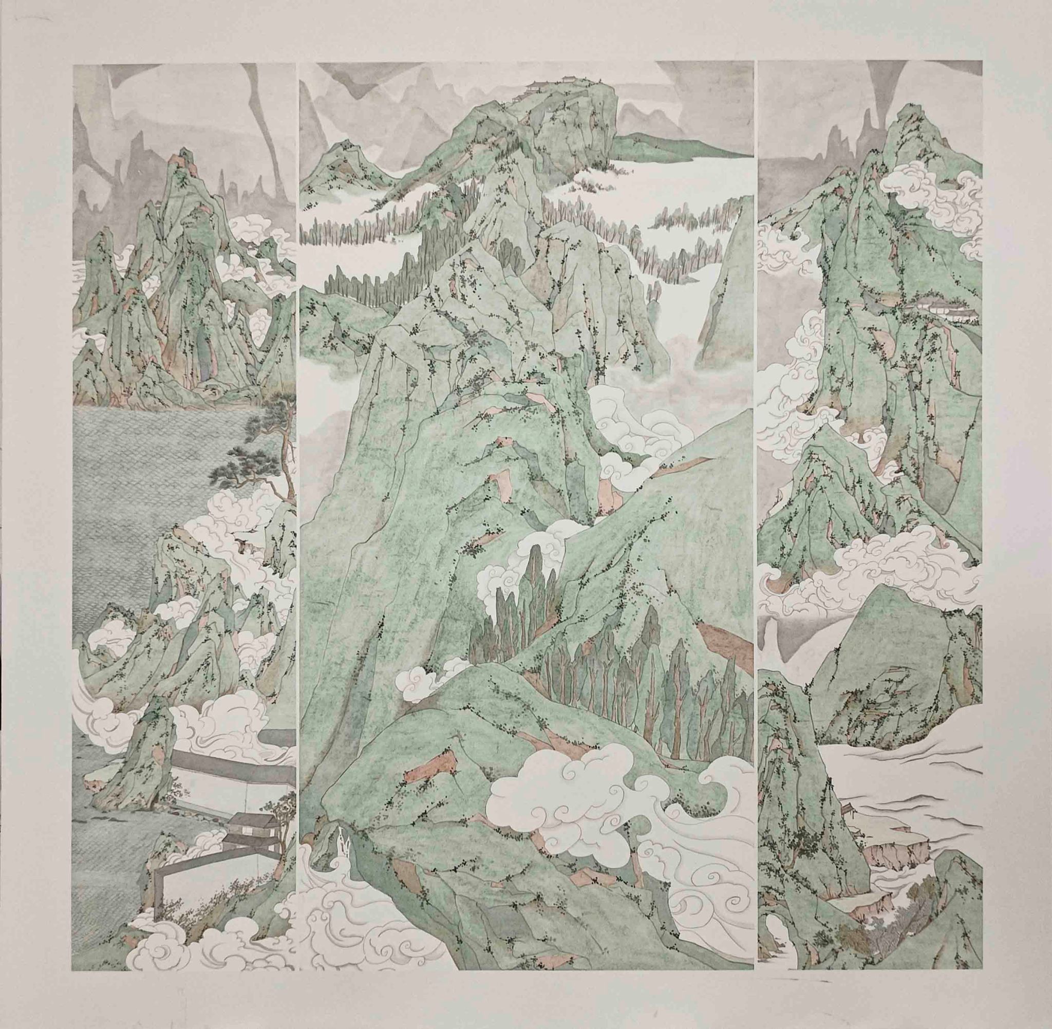 董昳芃 《青绿随想》 纸本水墨 160cm×160cm