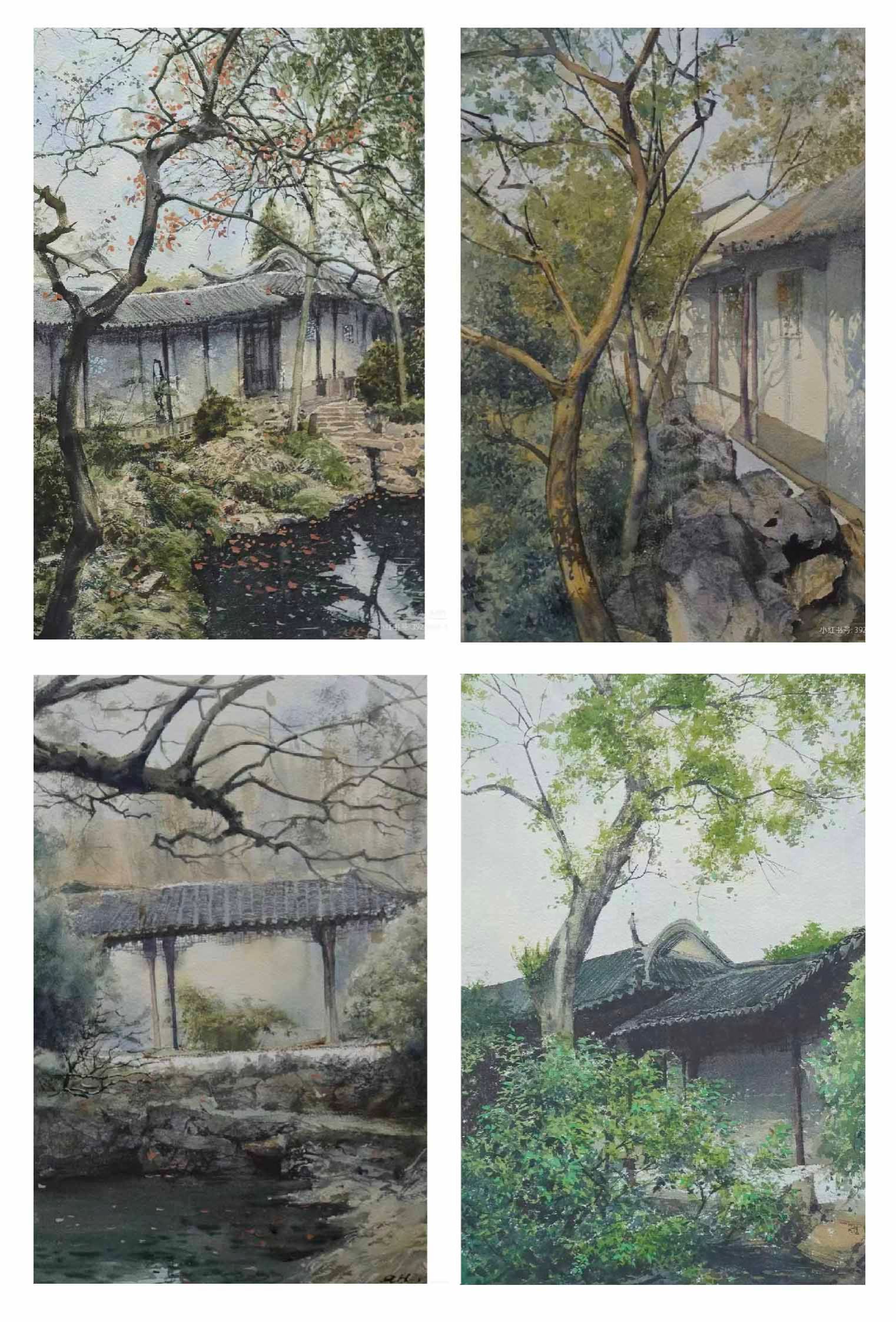 杨定强 《能不忆江南》 纸本水彩 28cm×44cm×4 幅